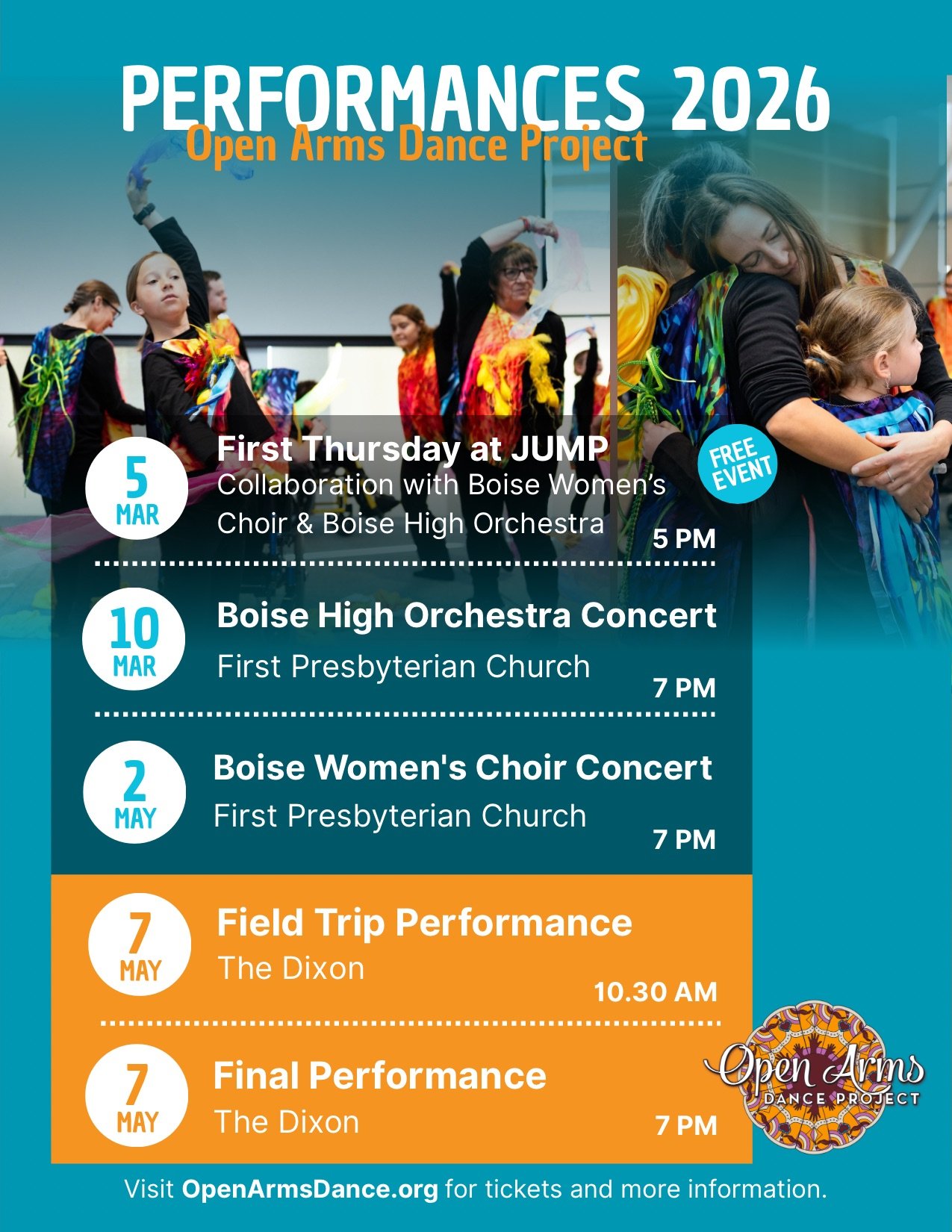 Come enjoy the premier of the 3 way collaboration between Open Arms Dance Project, Boise Women’s Chorus, and Boise High School Orchestra!